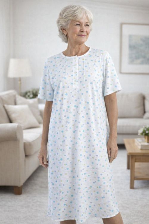 Camisón de LIN, manga corta señora, den tegido de poliamida fresquita. modelo con tapeta con botones y canesu en el pecho