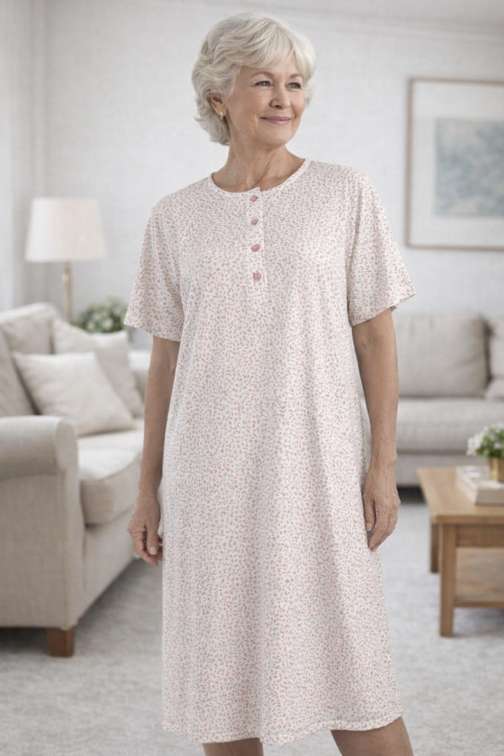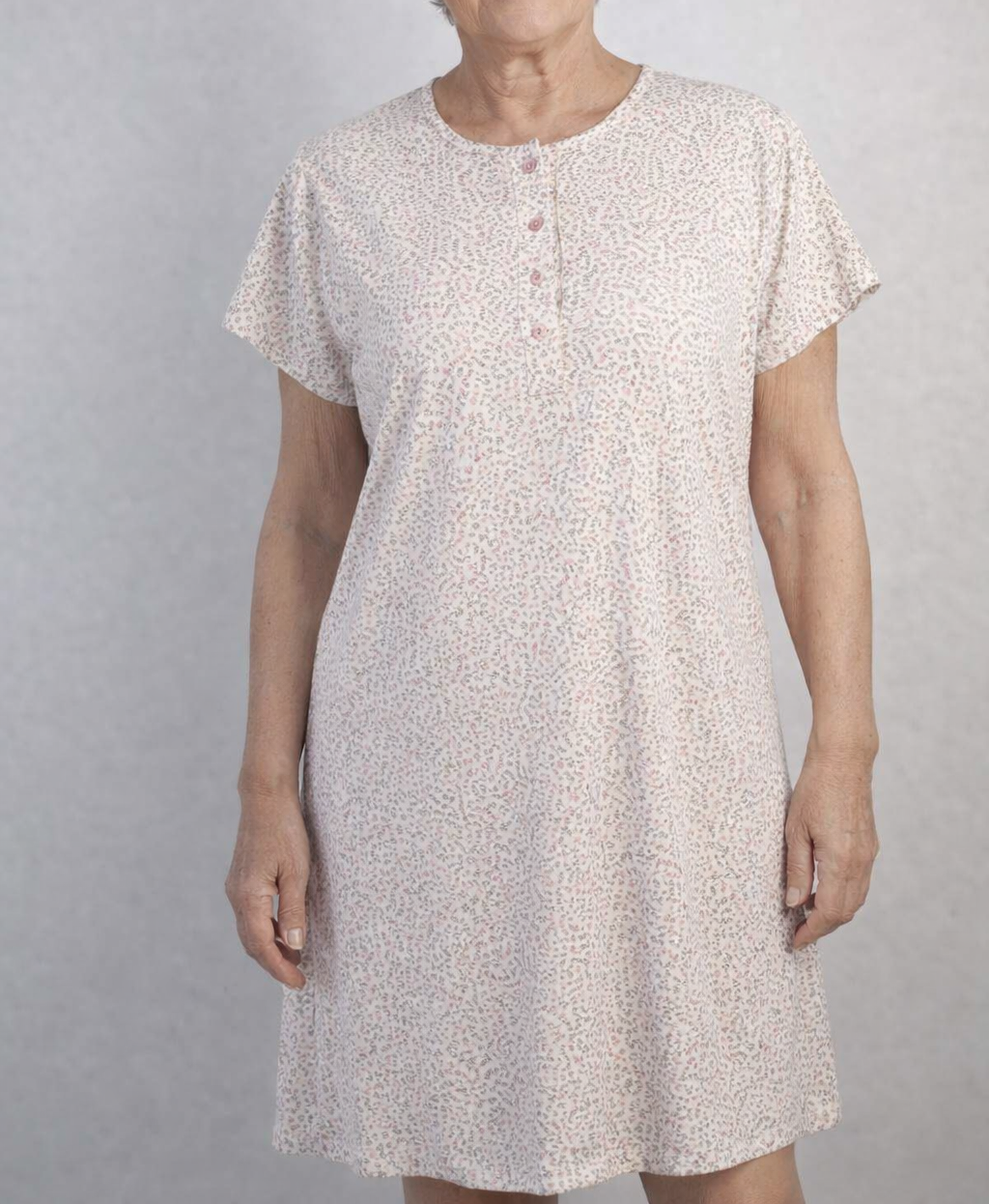 Camisón de LIN, manga corta señora, 100% algosón.  modelo con tapeta con botones