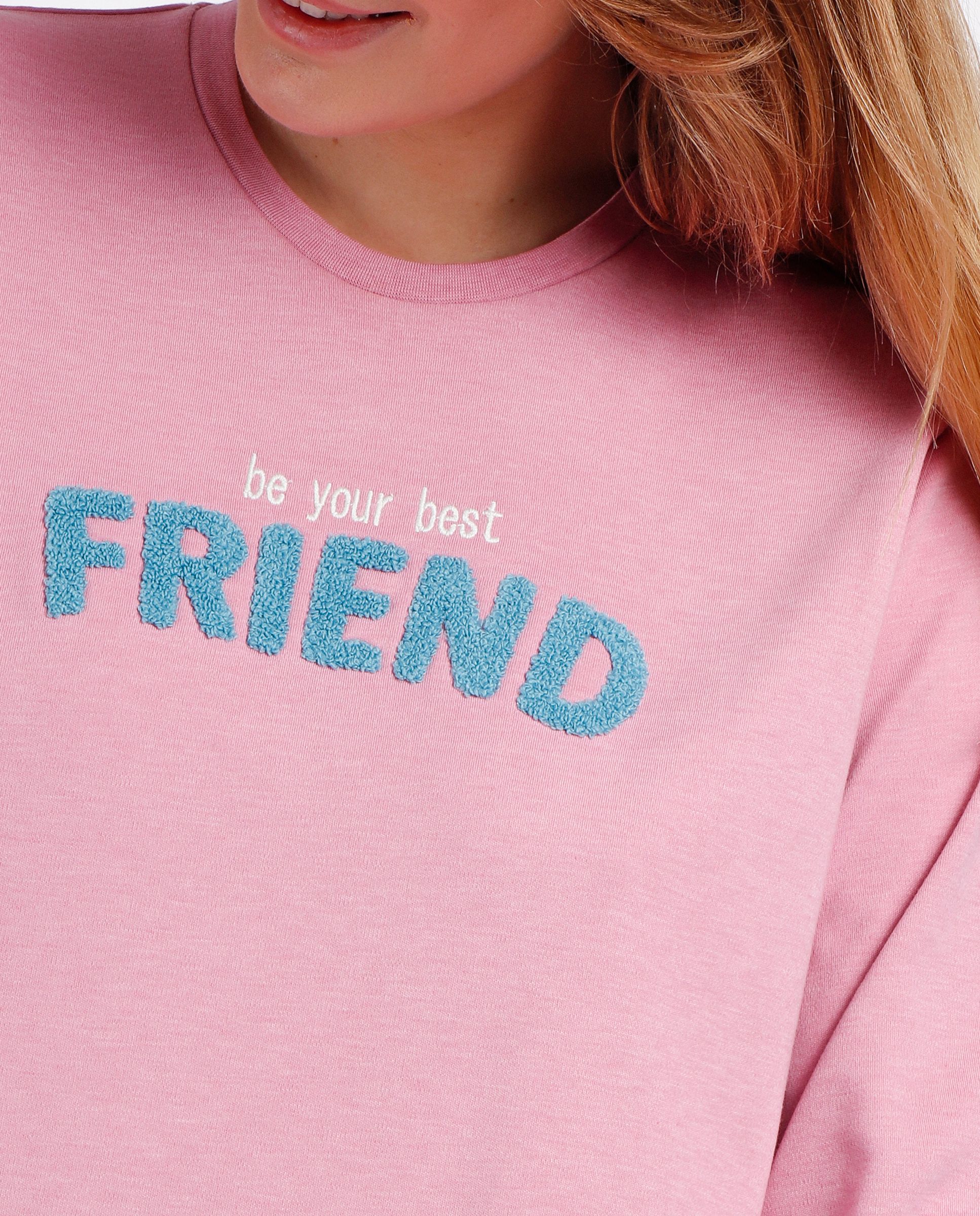 T-shirt of interlock knit fabric 90% CO, 10% VIS. Embroidered details. Trousers of knit fabric 100% CO, with elastic band..