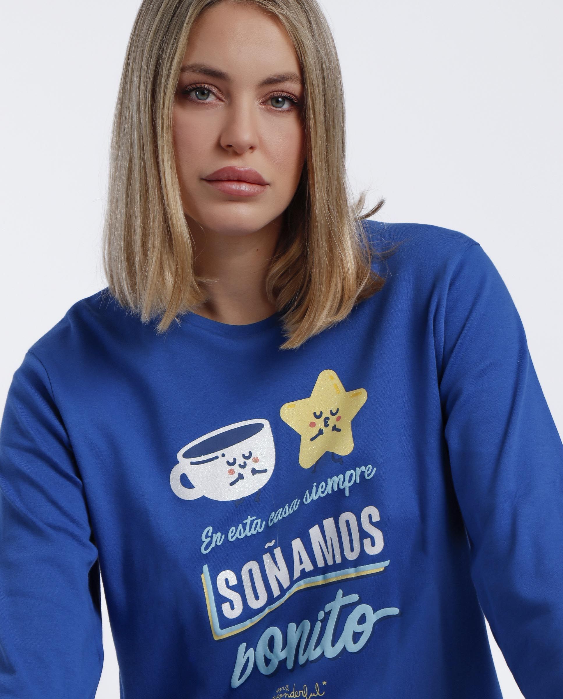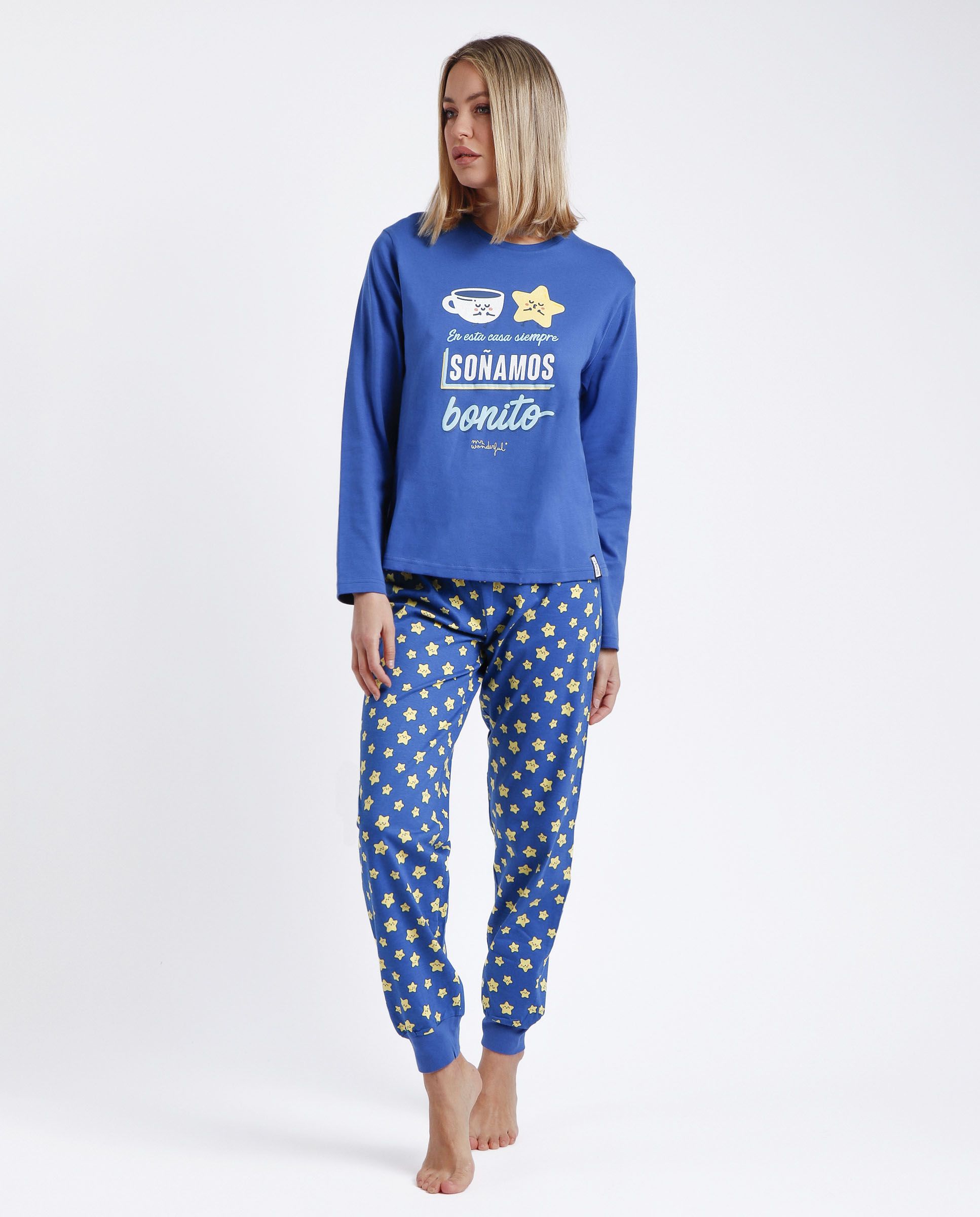 Pijama de punto 100% CO, con puños. Detalles en glitter.