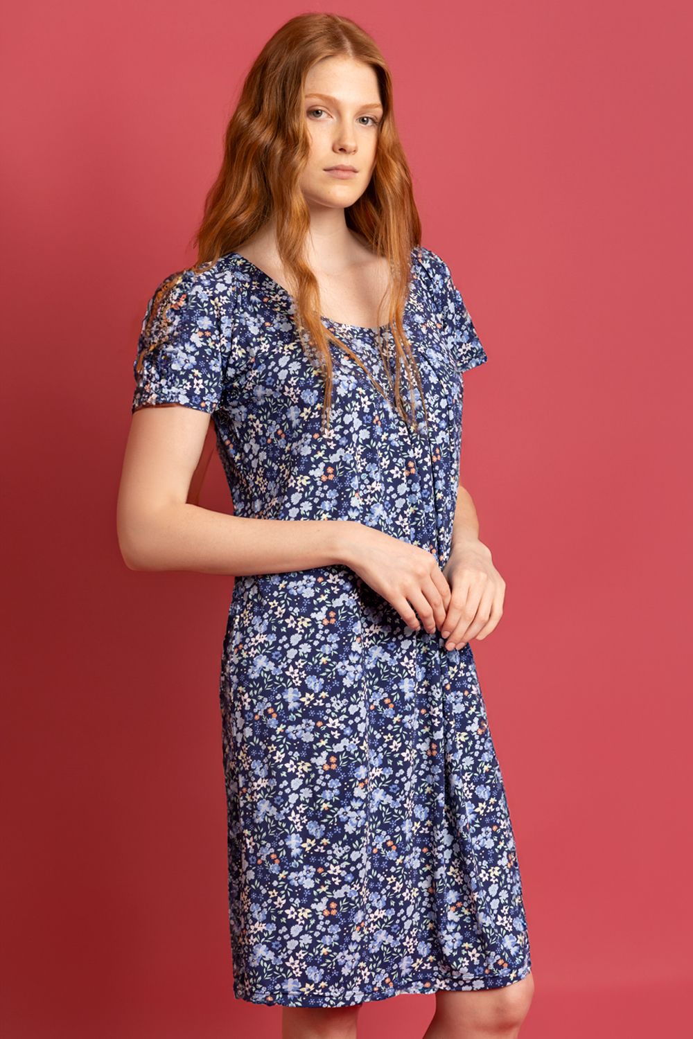 * Camisola de punto viscosa, de manga caída, escote redondo y color azul.