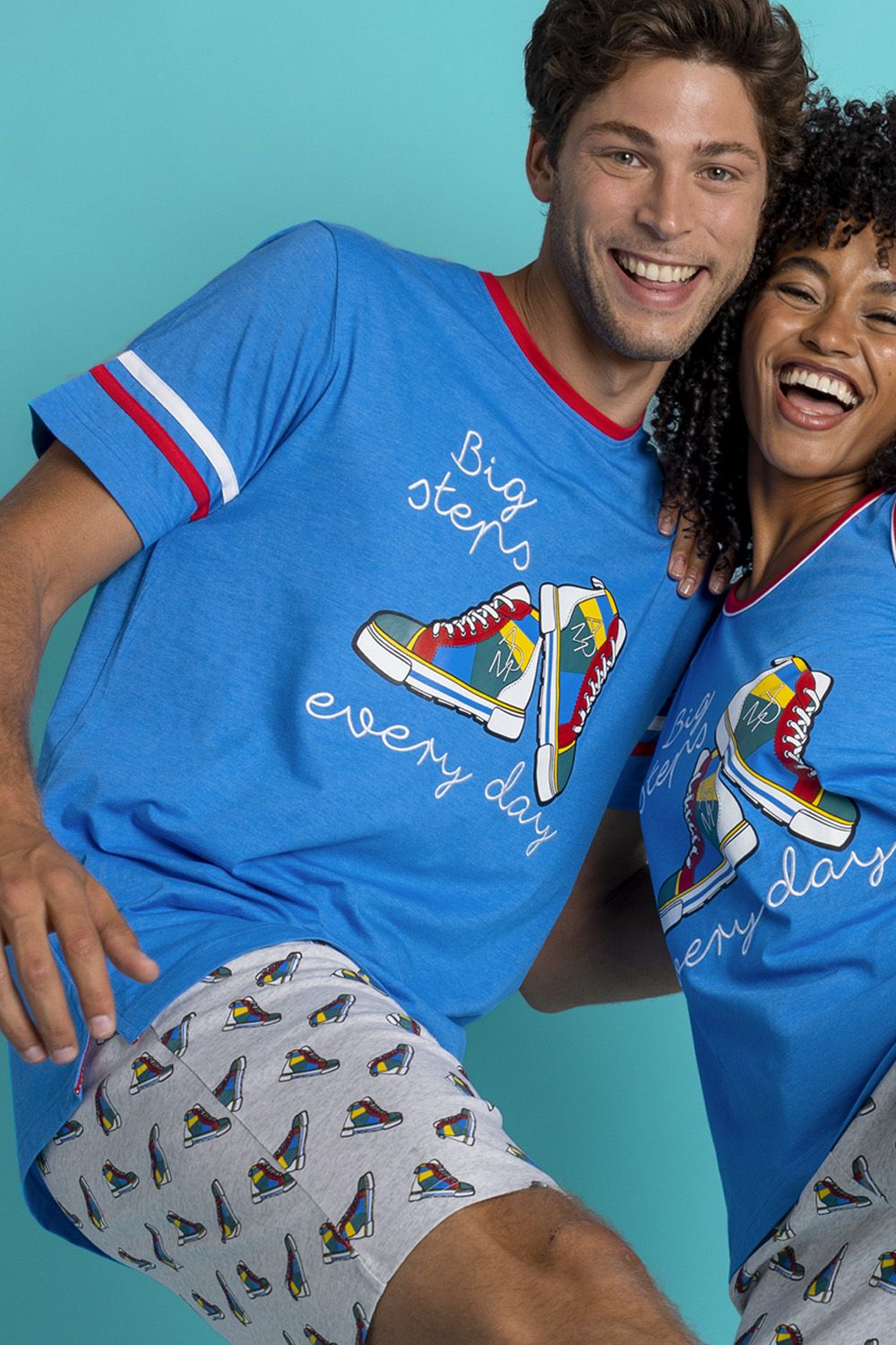 * Pijama de punto de algodón, de manga corta, cuello redondo y pantalón corto
