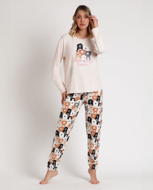 Pijama mujer algodón con pantalon estampado de osos.