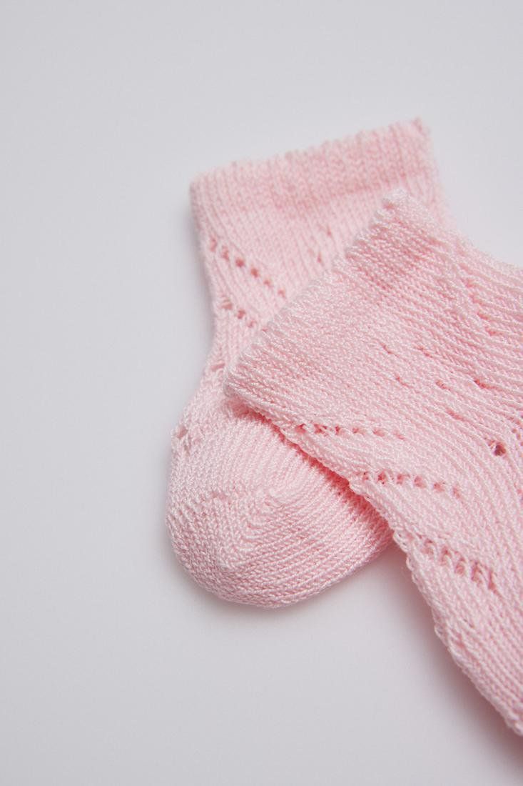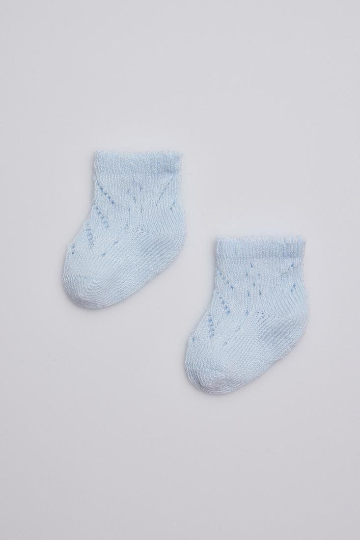Calcetín básico recién nacido. Tejido en suave calado en algodón, se ajusta ergonómicamente al pie del bebé evitando que deslice. Cuidado prenatal asegurado con el puño especial antipresión. El confort necesario para los más pequeños de la casa.