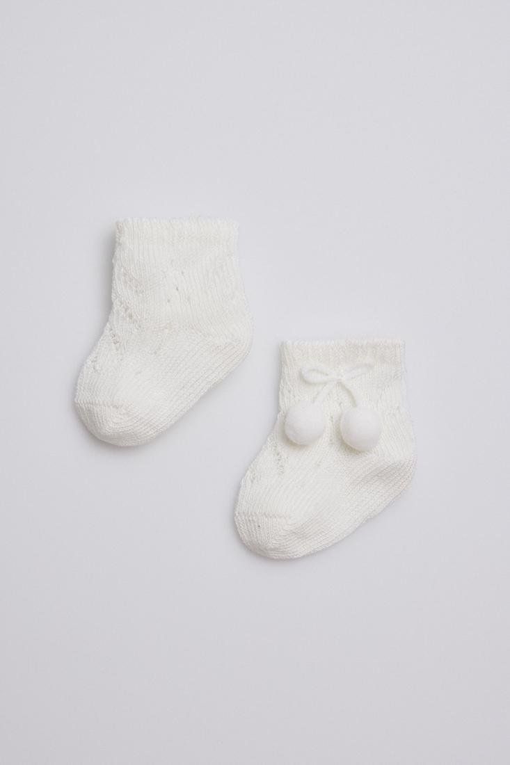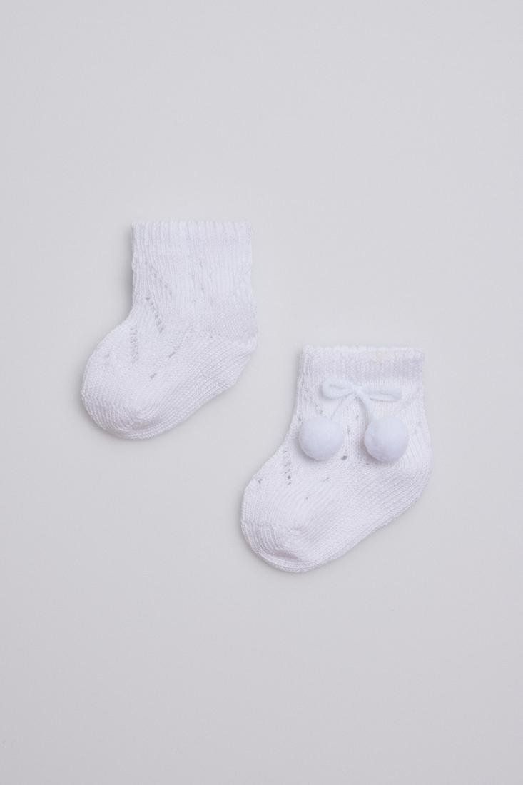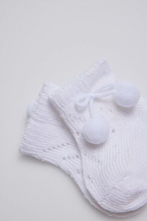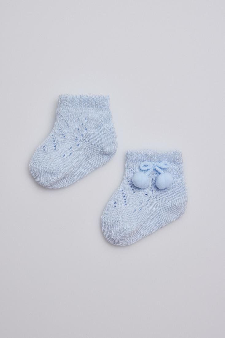 Calcetín básico recién nacido. Tejido en suave calado en algodón y dulces decoraciones en el tobillo, se ajusta ergonómicamente al pie del bebé evitando que deslice. Cuidado prenatal asegurado con el puño especial antipresión. El confort necesario para los más pequeños de la casa.