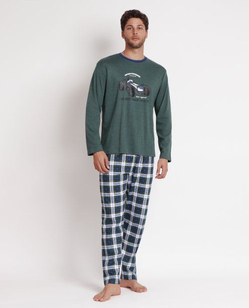 Pijama caballero  con pantalón estampado de cuadros y con camiseta con un dibujo de coche de carreras, con bolsillos.
