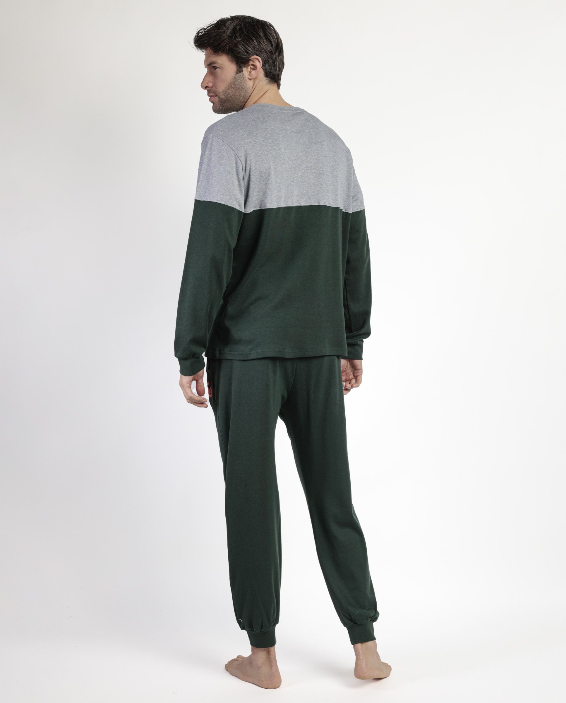 * Pijama de punto de algodón, de manga larga, cuello redondo y pantalón largo.