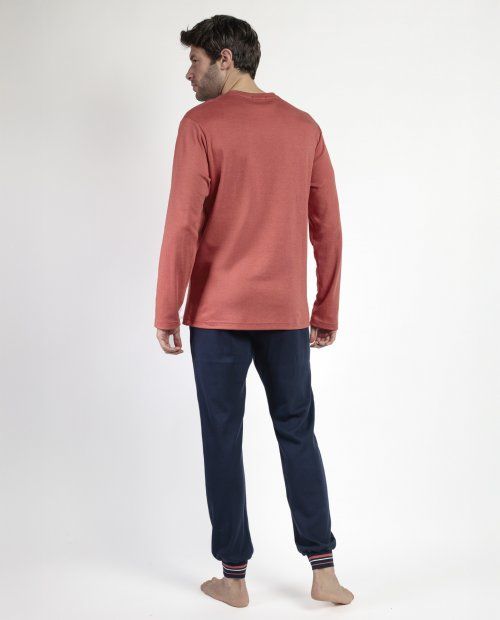 * Pijama de punto de algodón, de manga larga, cuello redondo y pantalón largo.