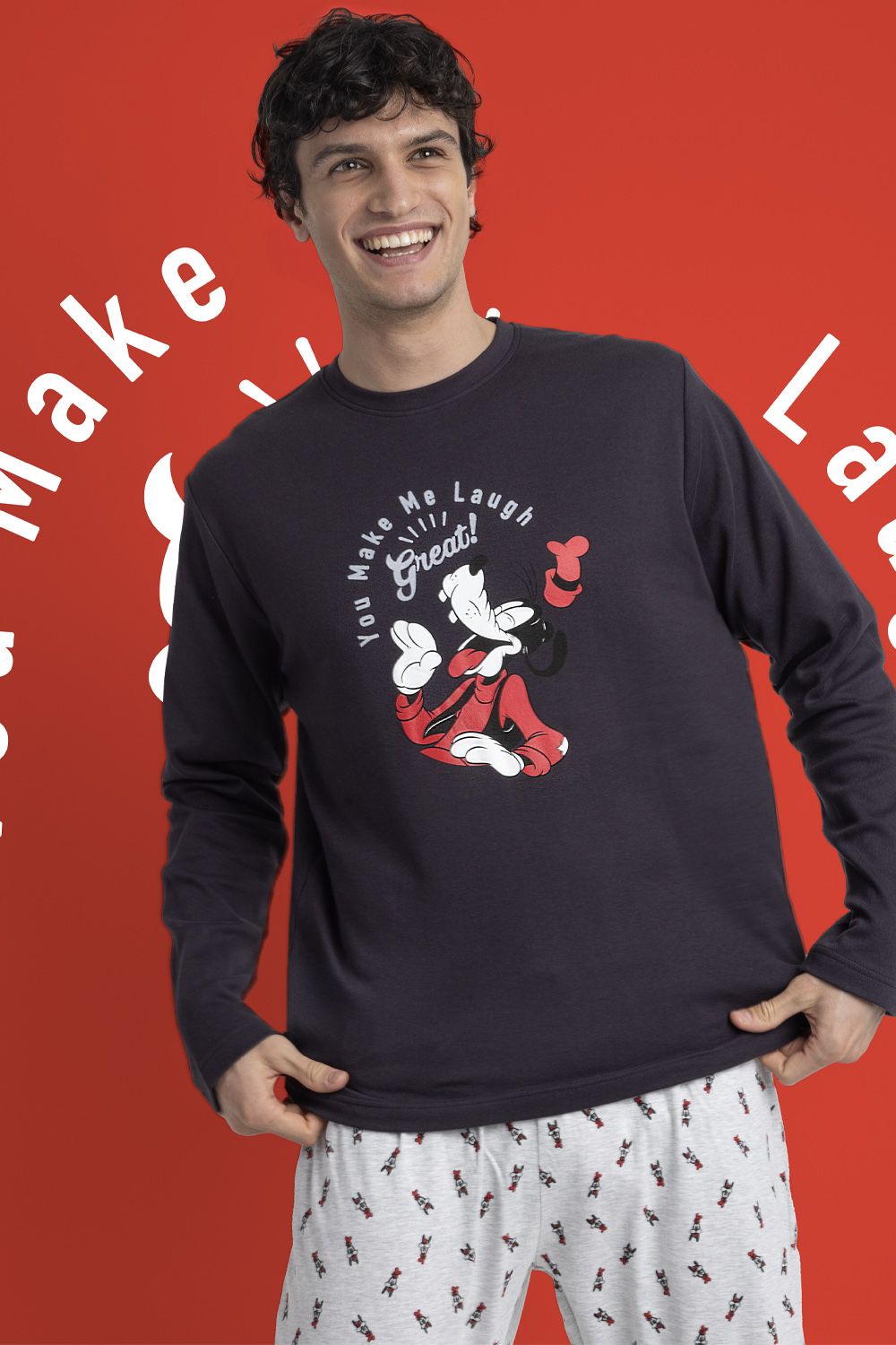 DISNEY Pijama Manga Larga You Make Me Laugh para Hombre
