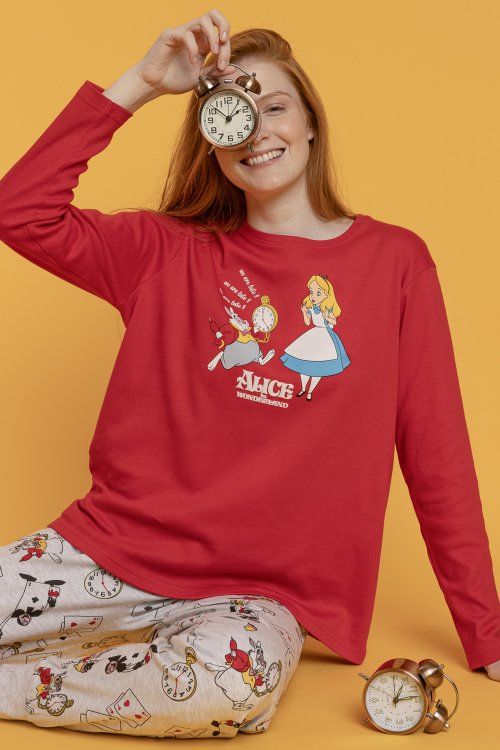 DISNEY Pijama Manga Larga Red Alice in Wonderland para Mujer