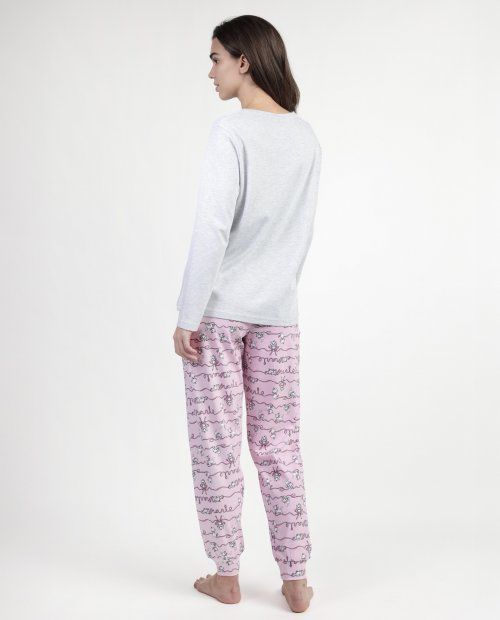 * Pijama de punto de algodón, de manga larga, cuello redondo y pantalón largo.