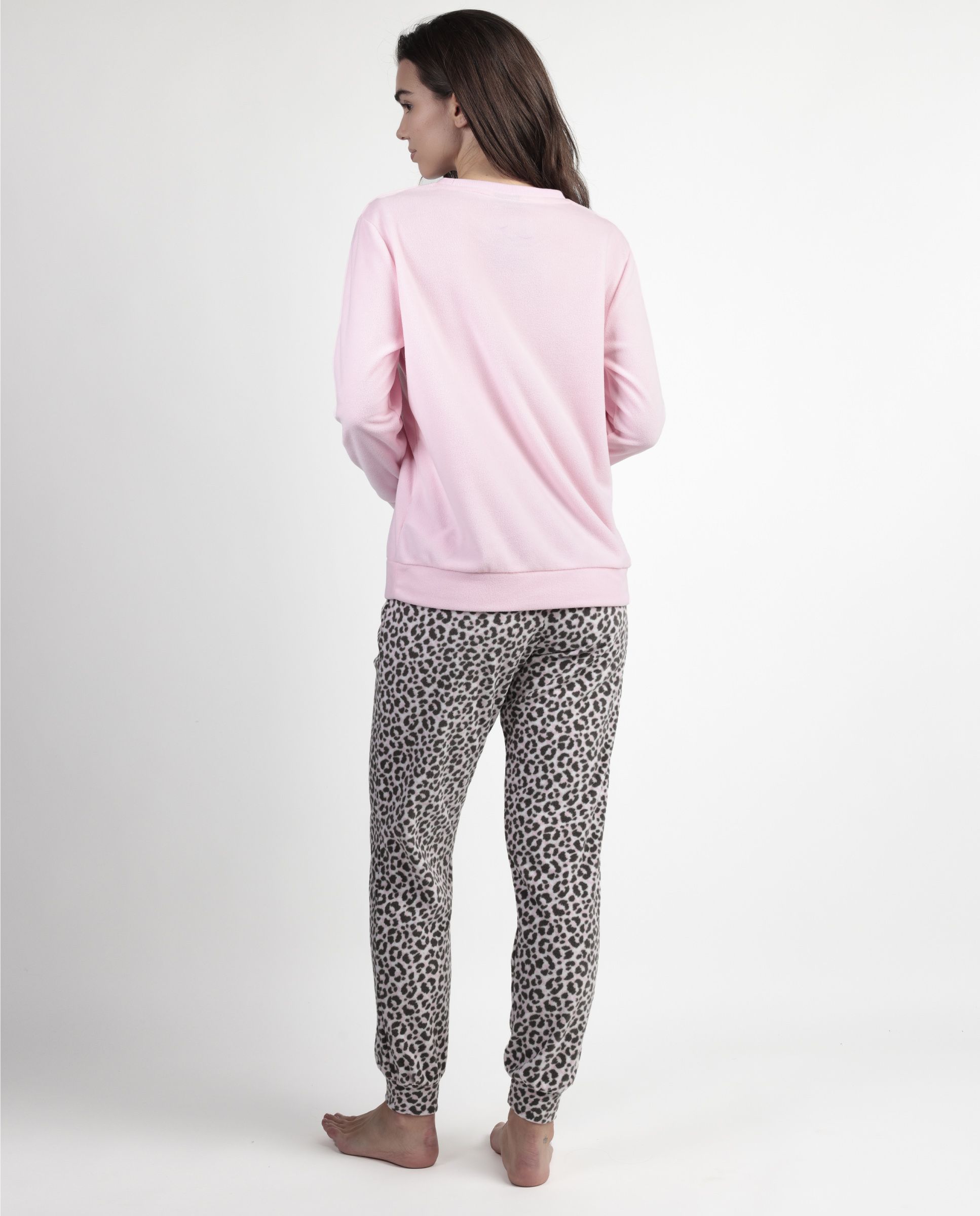 * Pijama de tejido micropolar muy calentito, de manga larga, cuello redondo y pantalón largo.
