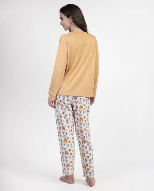 * Pijama de punto de algodón, de manga larga, cuello redondo y pantalón largo.