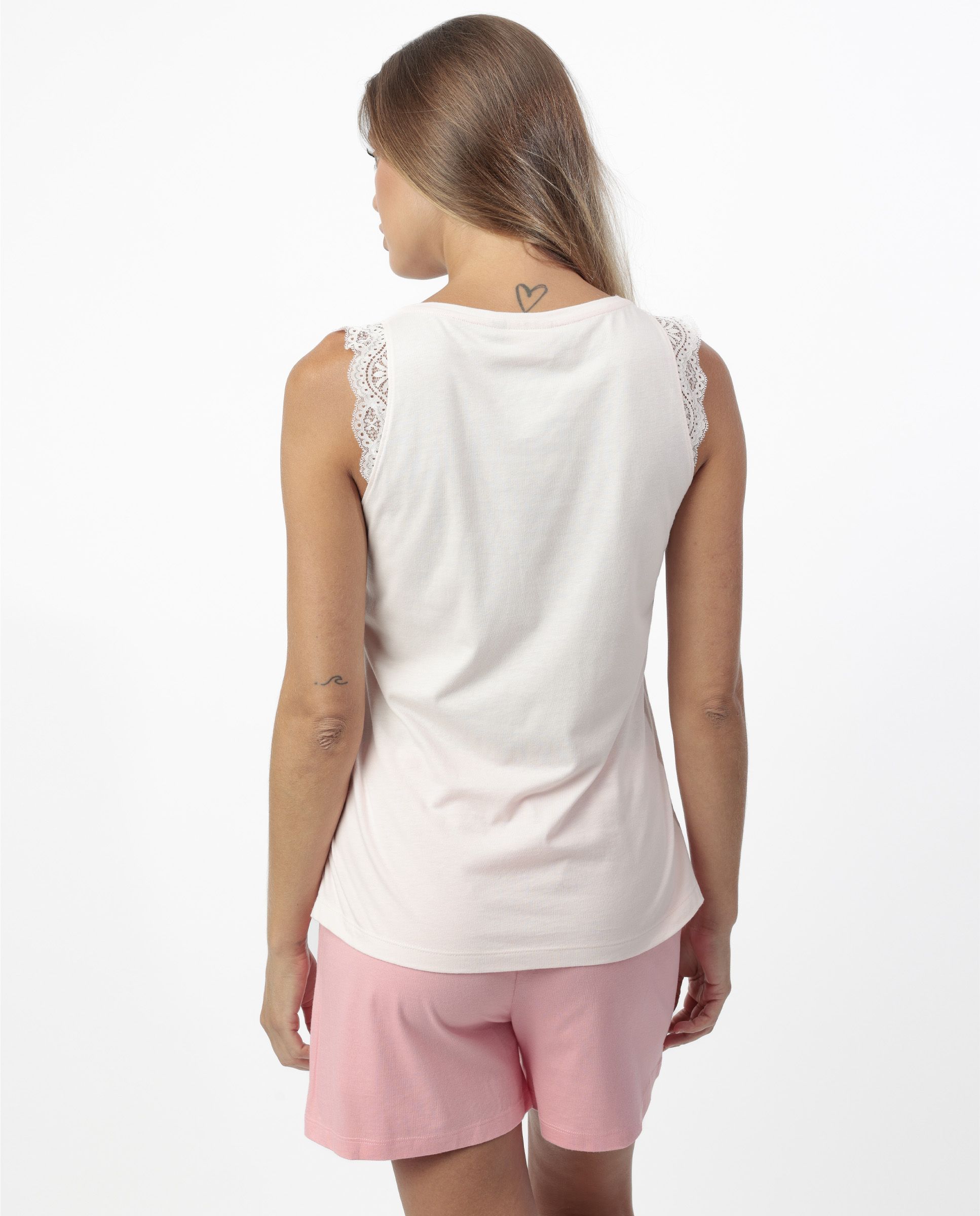 * Pijama de punto de viscosa, sin mangas, cuello pico y pantalón corto.