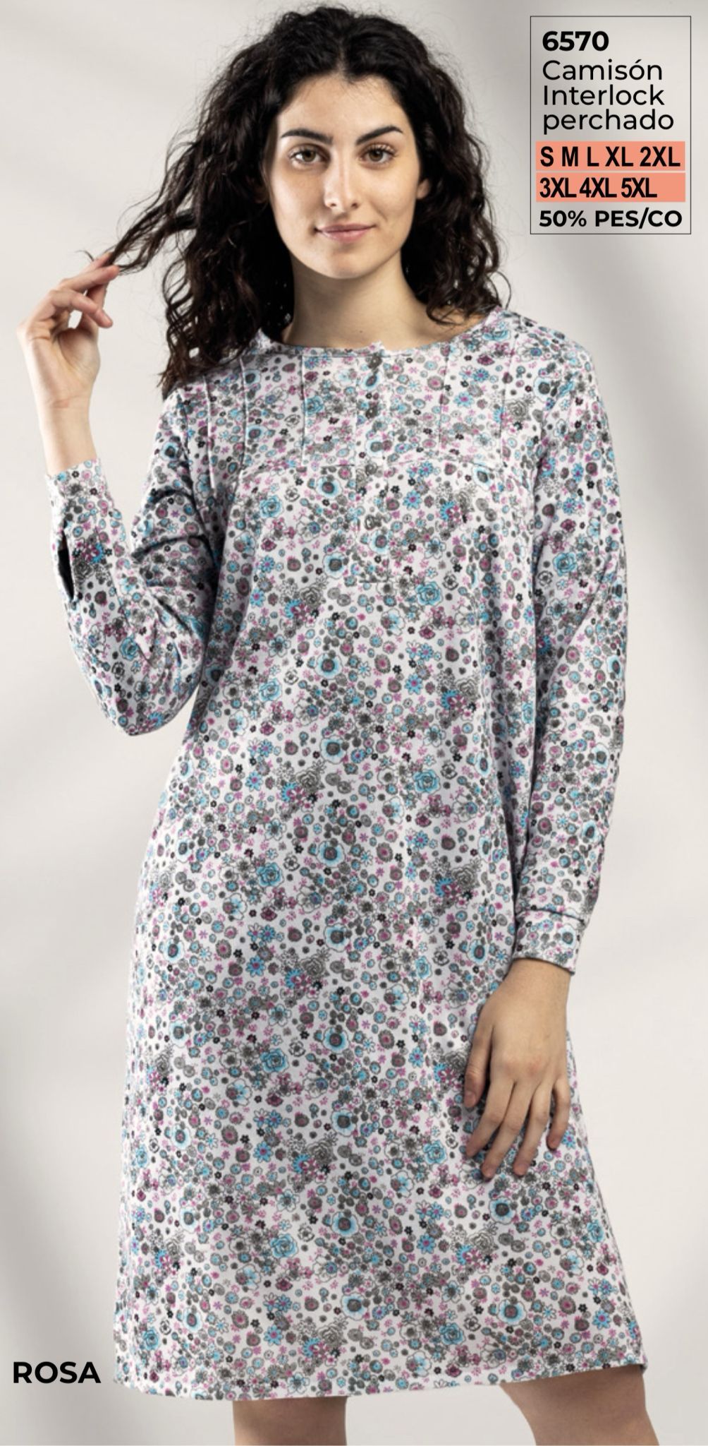 6570 CAMISON MANGA LARGA INTERLOCK PERCHADO ALGODON LIN