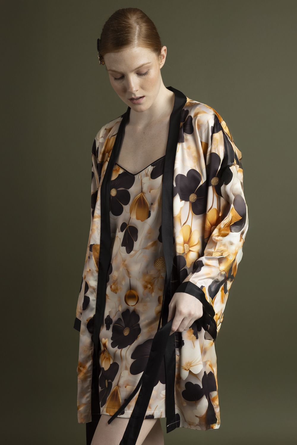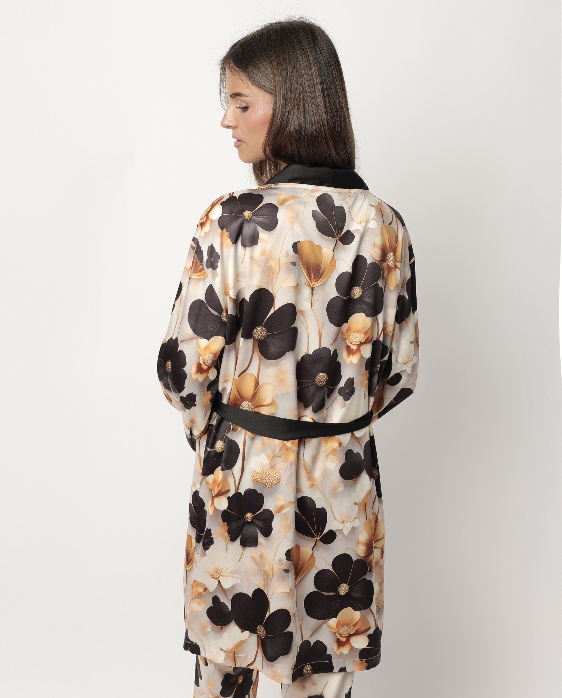 ADMAS LUXURY Bata Manga Larga Satinada Luxury Flowers para Mujer