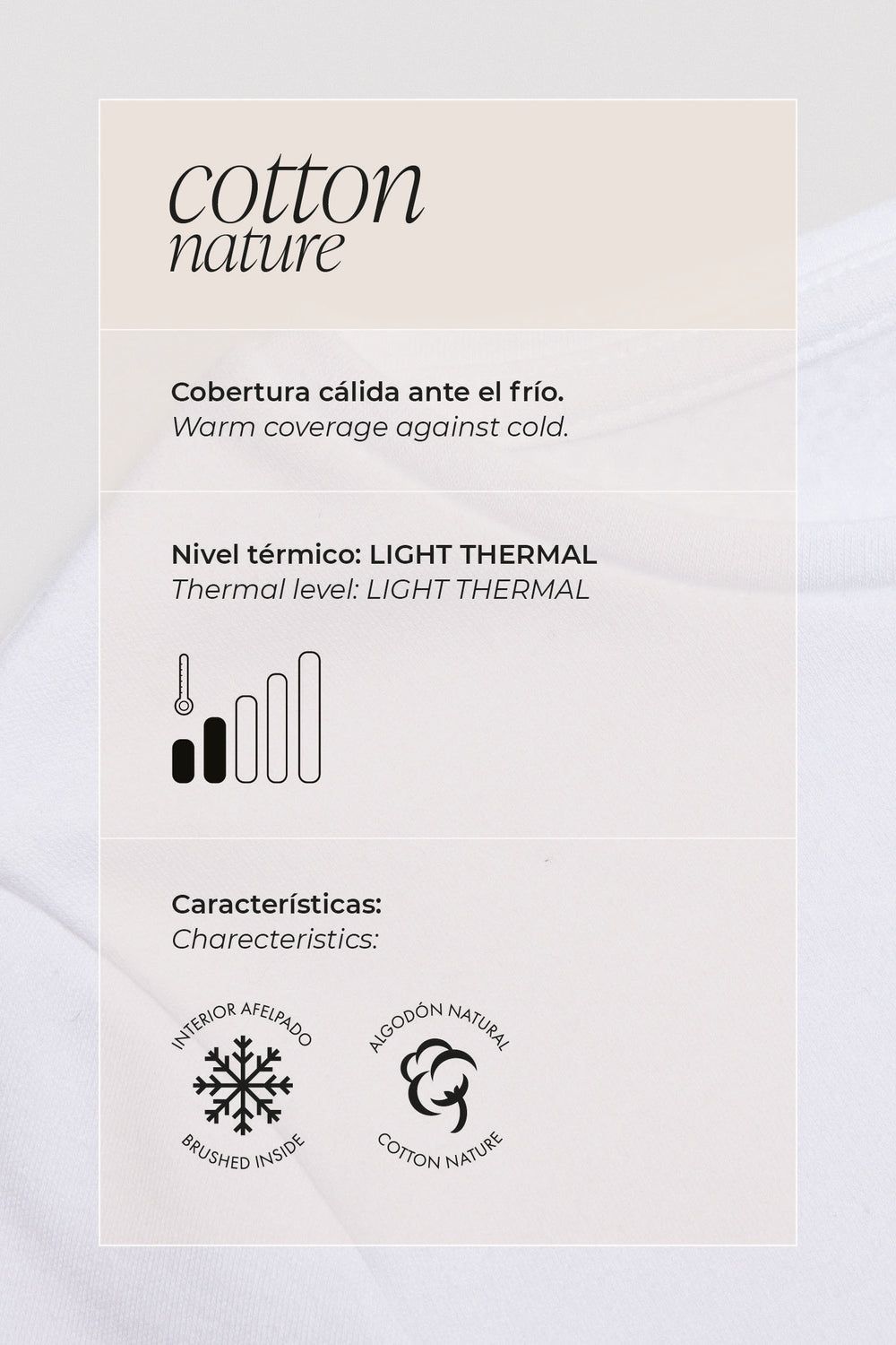 Camiseta térmica de manga larga para niños, confeccionada con algodón suave y interior afelpado, diseñada para aportar calidez ligera en días frescos. Ideal como capa base para mantener la temperatura sin añadir volumen.