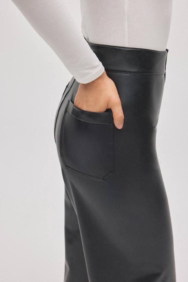 Pantalón ancho de tiro alto con efecto piel y interior afelpado