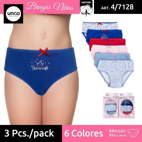 Bragas de niña algodon en packs de 3 ,marca UNCO.
