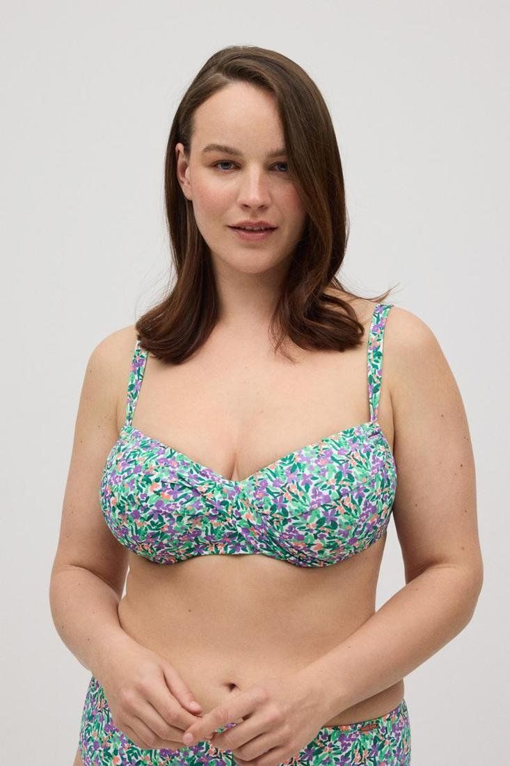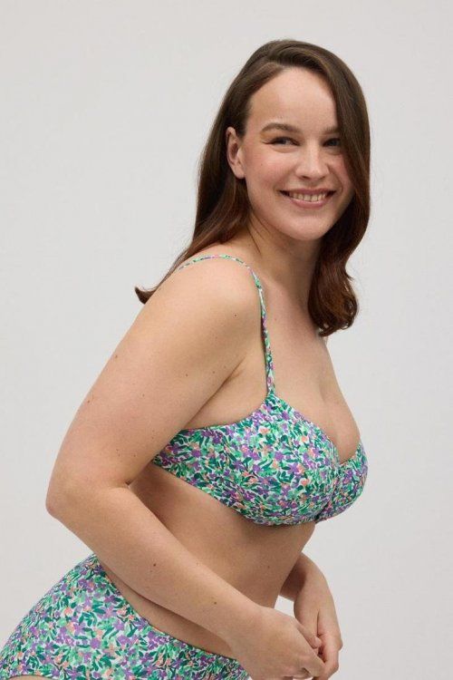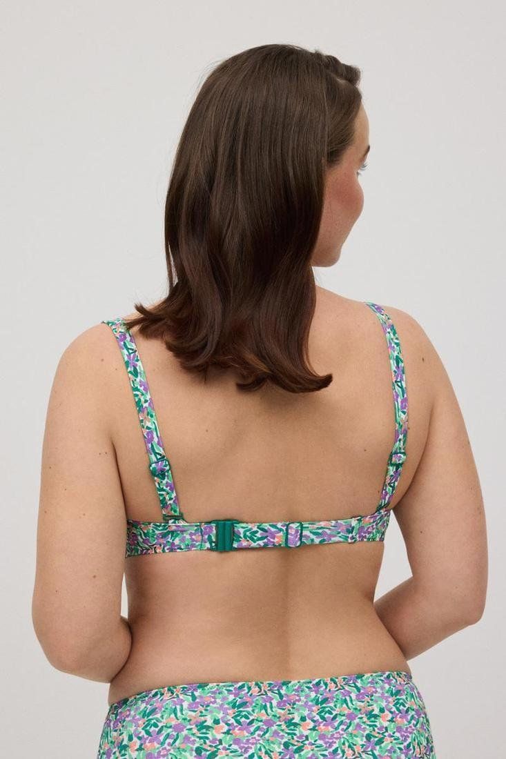Top de bikini reductor copa C y D con aro. Estampado floral y tejido micropiqué. Con tirantes fijos. Cierre con broche. ¡Combínalo con la braga de bikini de su conjunto!