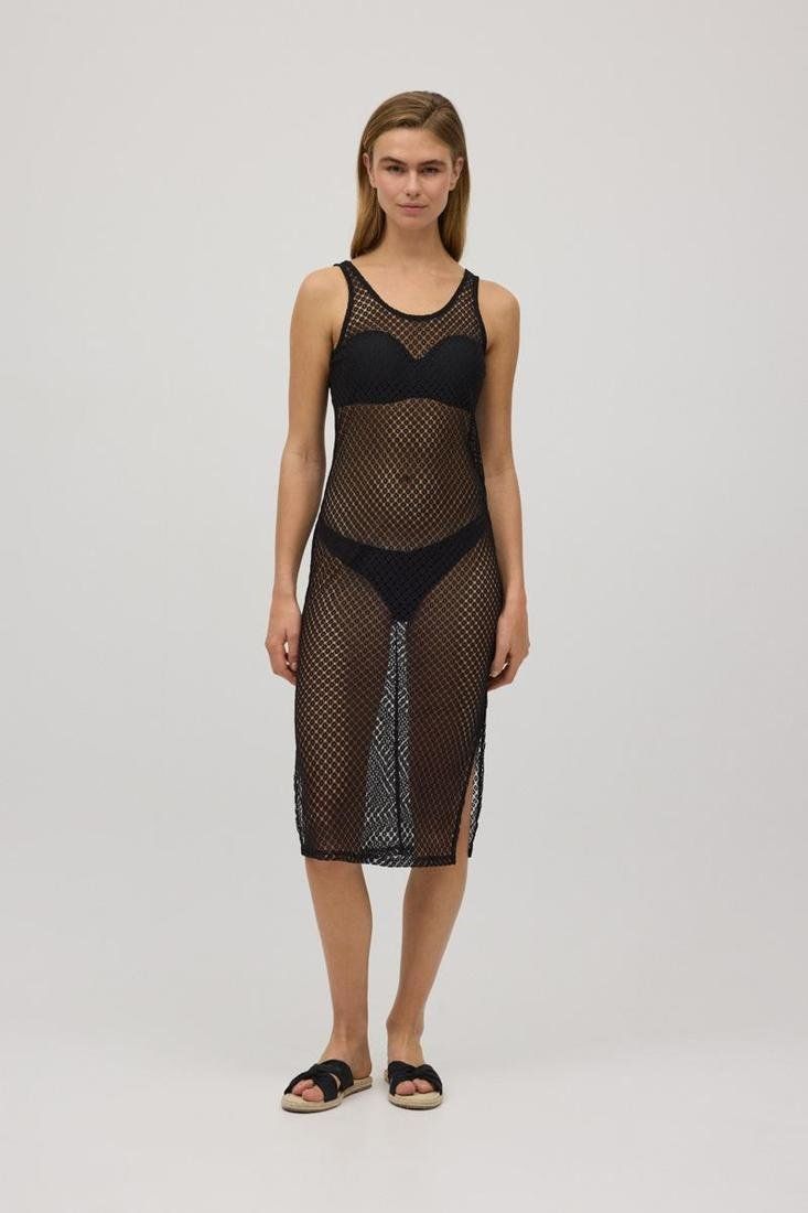 Vestido de tirantes de tejido calado. Prenda fresca y cómoda para lucir todo el verano. Estilo veraniego que favorece tu figura de forma natural. Ideal para los días cálidos de verano.