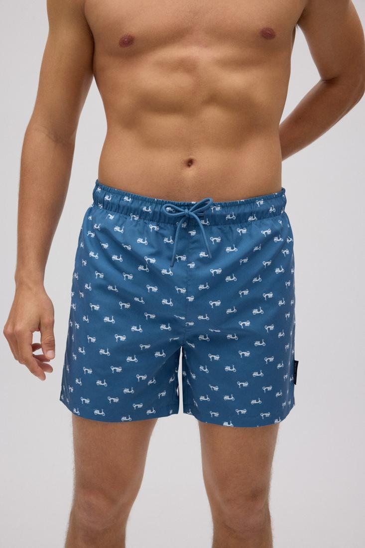 Bañador de corte medio. Tejido de secado rápido. Estampado de motos.