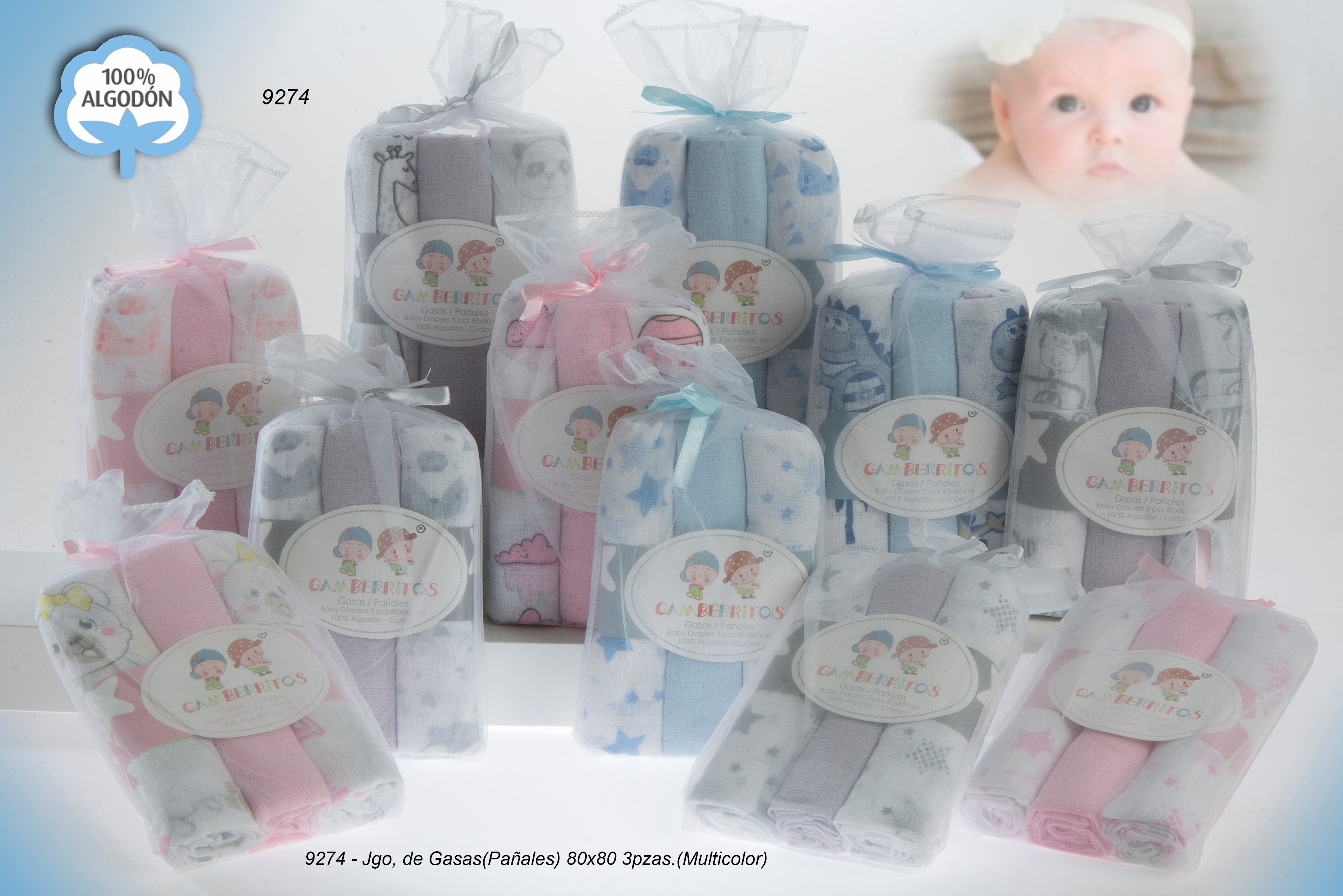 9274 GASAS 80 X 80 MULTICOLOR (3 PZS) GAMBERRITOS