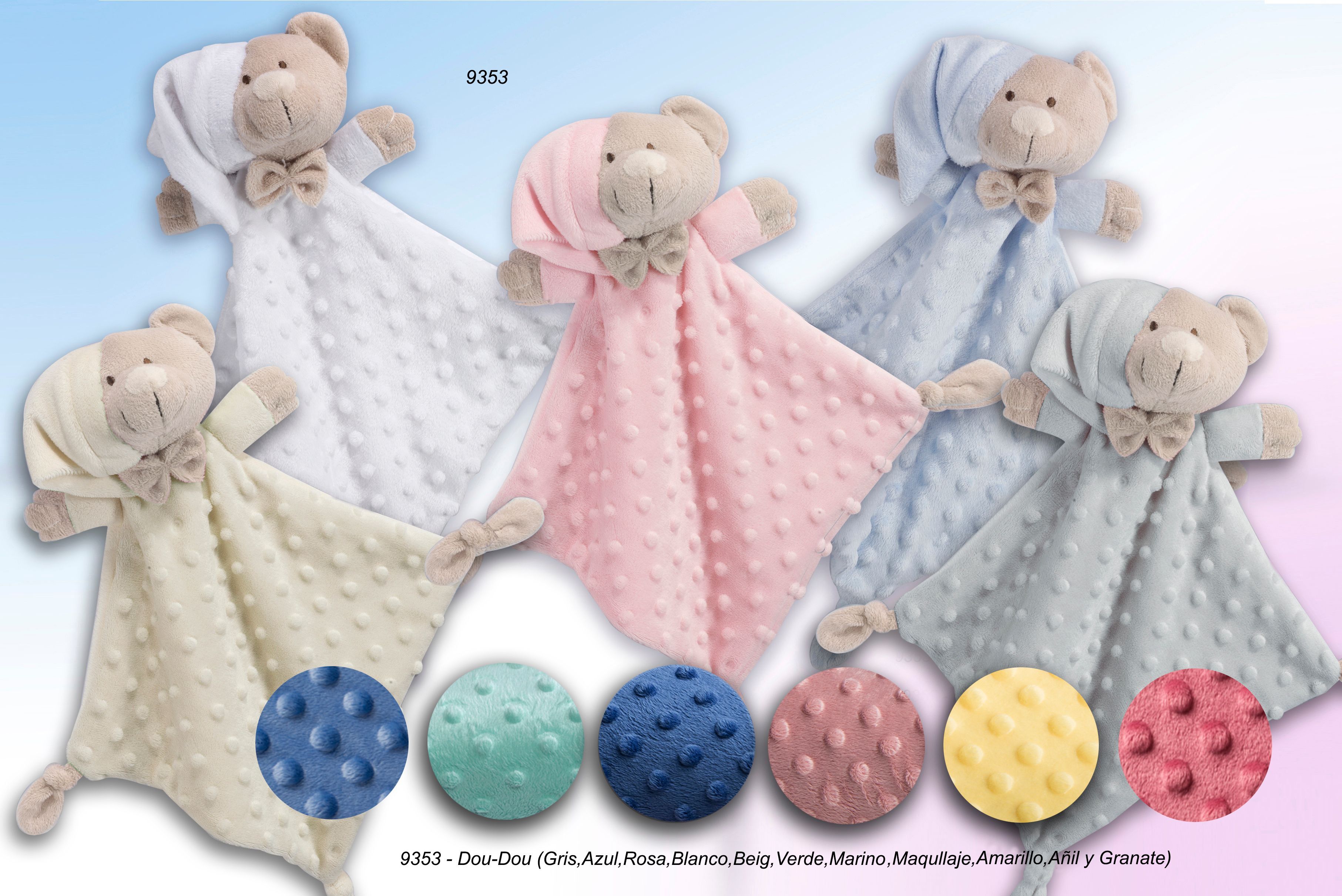 Dou-dou  de topitos de GAMBERRITOS, infantil con forma de peluche. Estimula los sentidos del bebé a la vez que le dá seguridad y bienestar. Adecuado para convertirse en un elemento inseparable para el bebé.