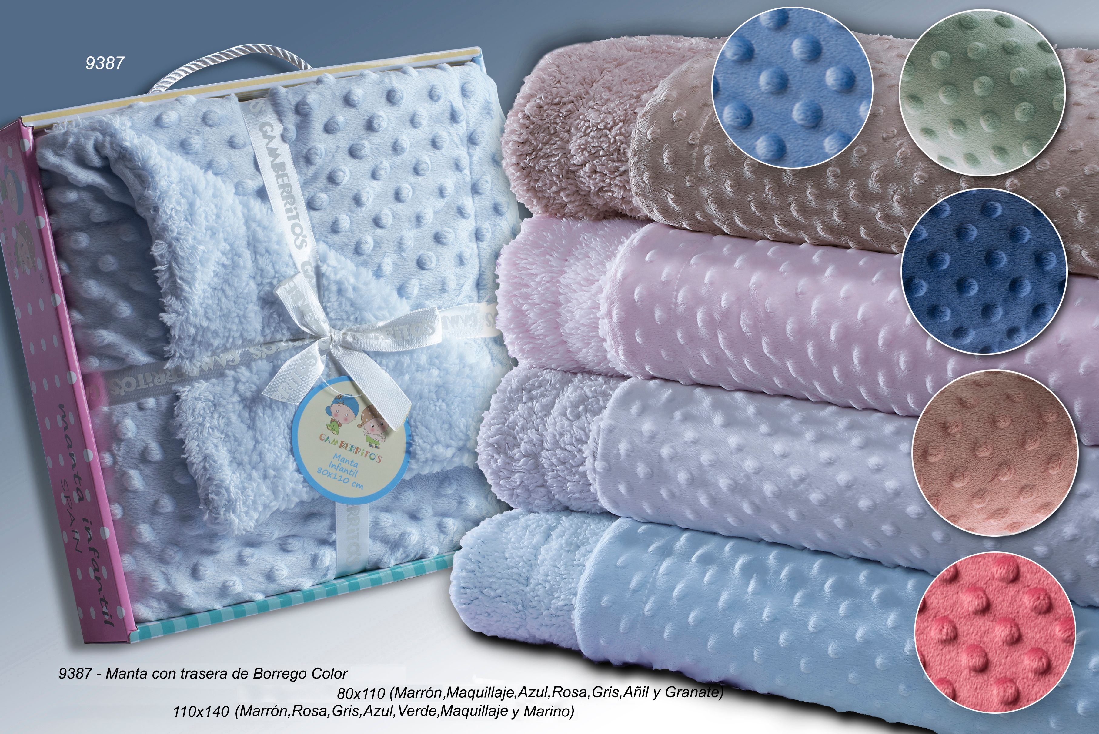 Manta infantil de  GAMBERRITOS de 80 x 110 de medida, Burbujas estrasuave, tacto sedalina, por el otro lado, esta compuesto de borrego