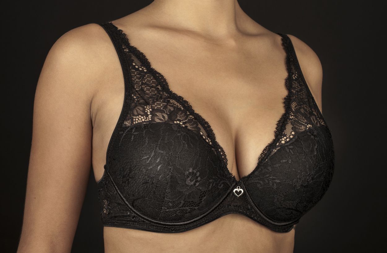 Sujetador de CREACIONES SELENE, de relleno push up, "tipo bralette" de fino encaje y escote pronunciado,.
