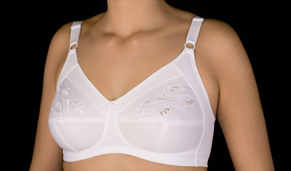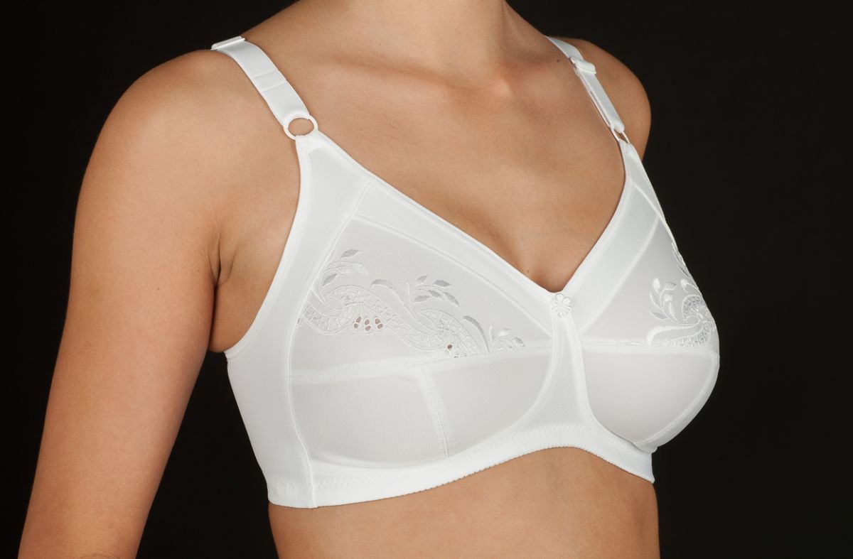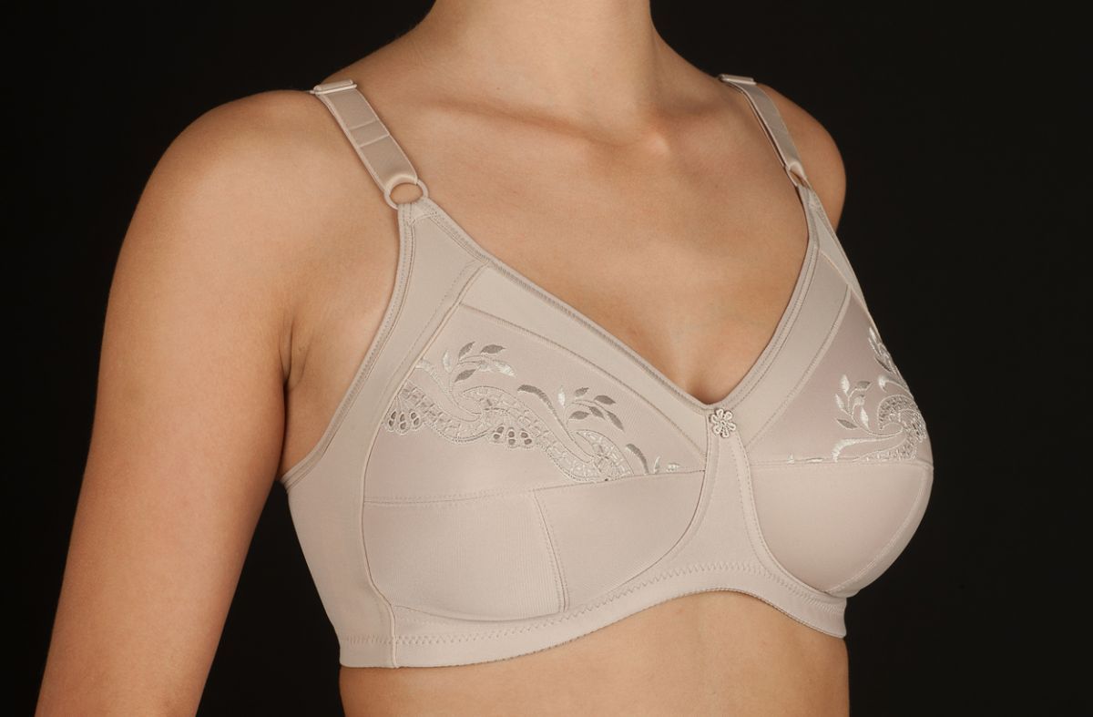Sujetador de CREACIONES SELENE copa B sin aro y sin relleno, fabricado para gran sujección y  con detalles bordados.