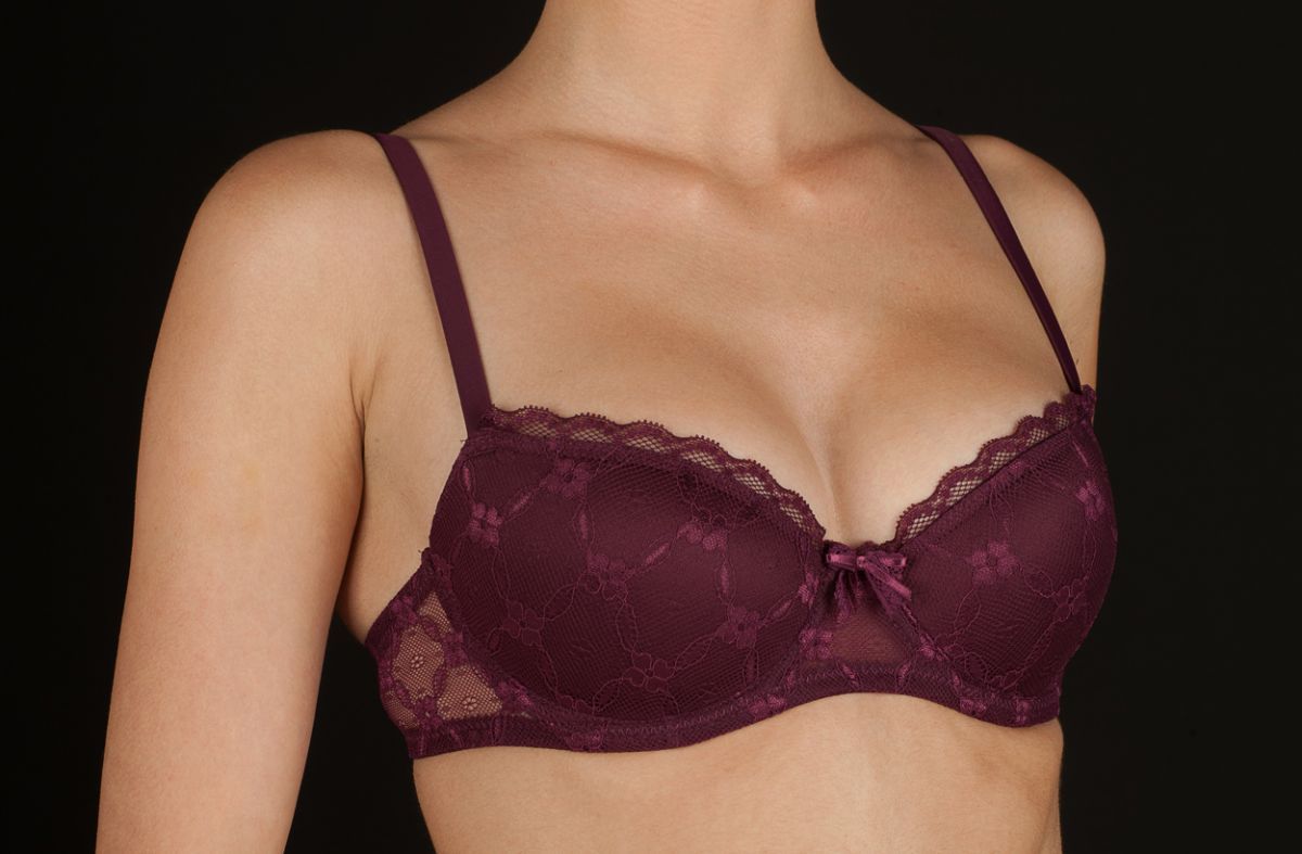 Sujetador de fino encaje, con aros y copa de relleno push up.