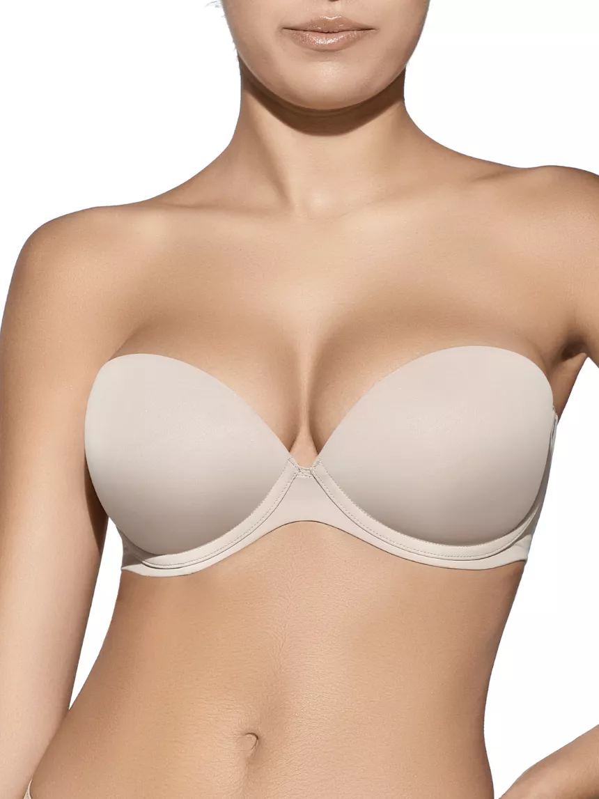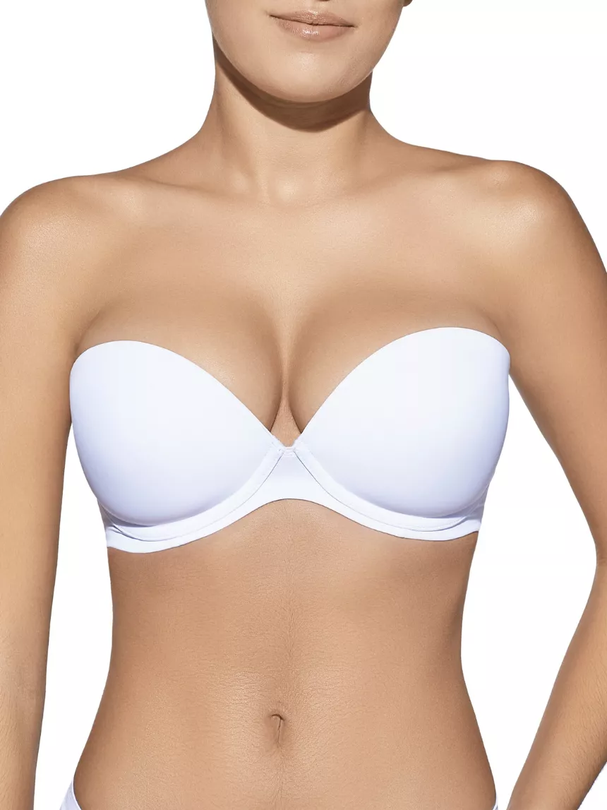 Sujetador de CREACIONES SELENE copa B sin tirantes con relleno con escote bajo.
