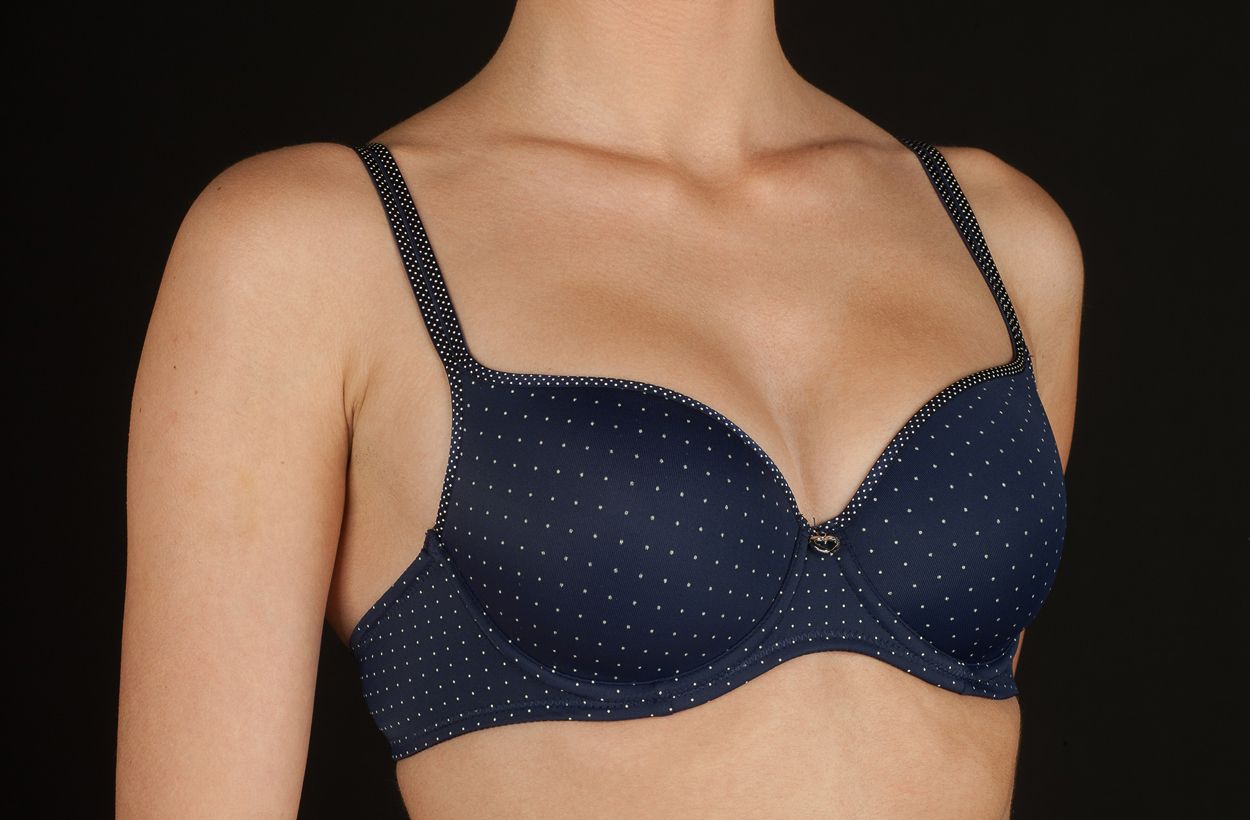 Sujetador de CREACIONES SELENE con aro y copa de relleno. Tejido estampado en puntos.