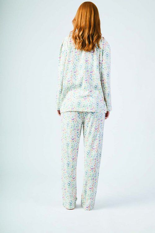 Pijama de mujer de Javier Golmar  con camiseta abierta de botones,  con bolsillos y puño en el pantalón
