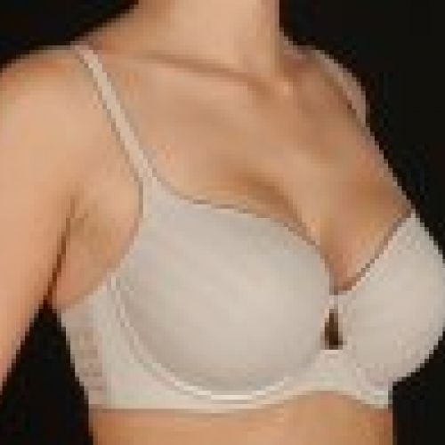 Sujetador de CREACIONES SELENE con aro, copa de relleno. Fabricado en un fino tul con franjas.