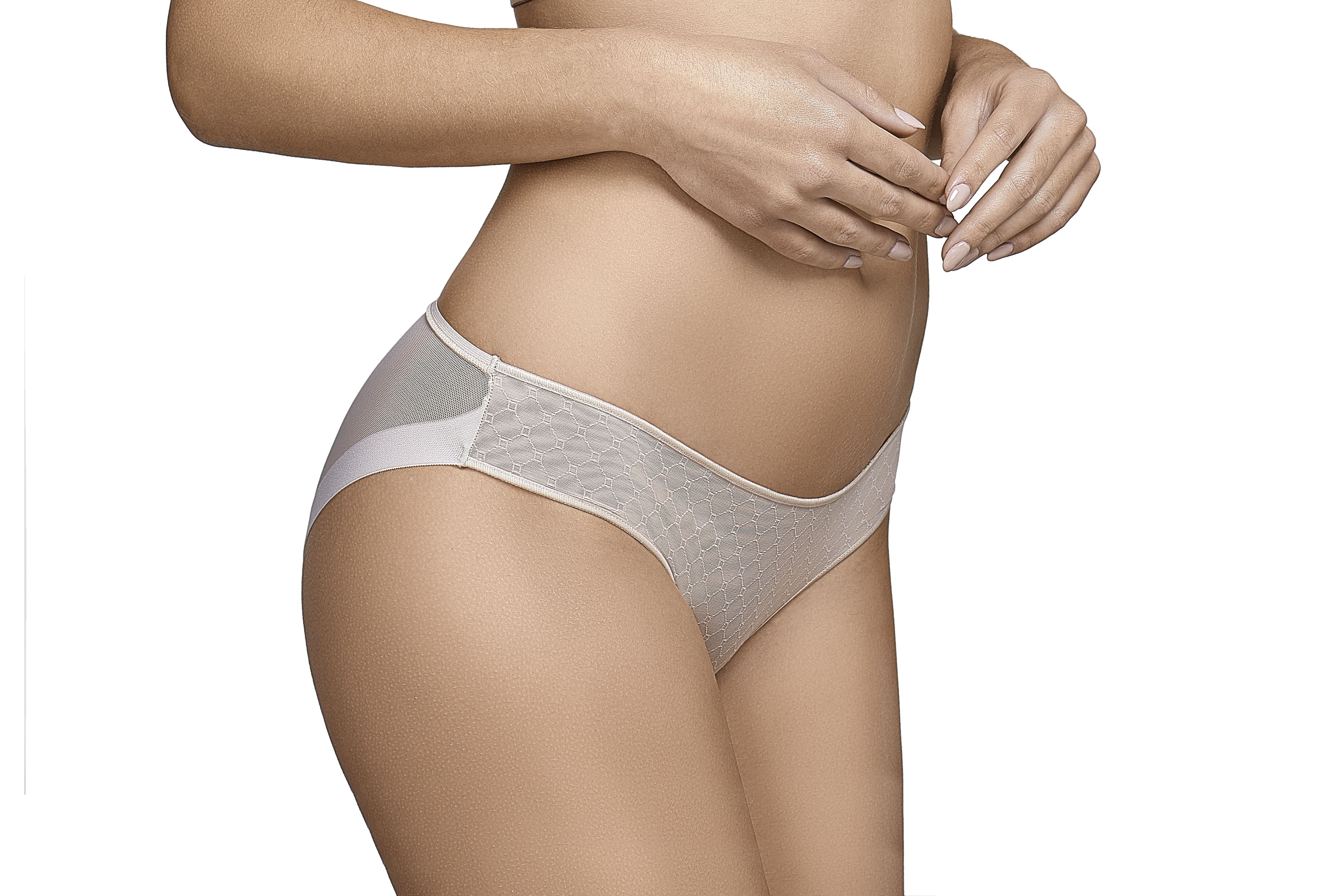 Braga bikini con corte laser de tul en la parte trasera, en la parte delantera con elegante encaje sofisticado a juego con el sujetador Katia o Roxana.