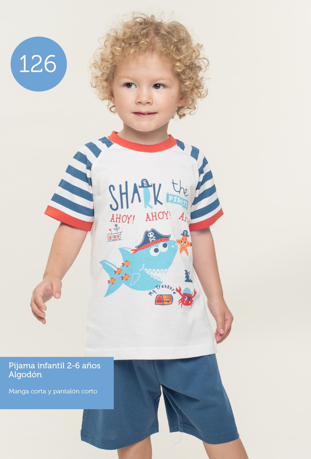 Pijama niño de algodón con camiseta de manga corta y  pantalón corto.