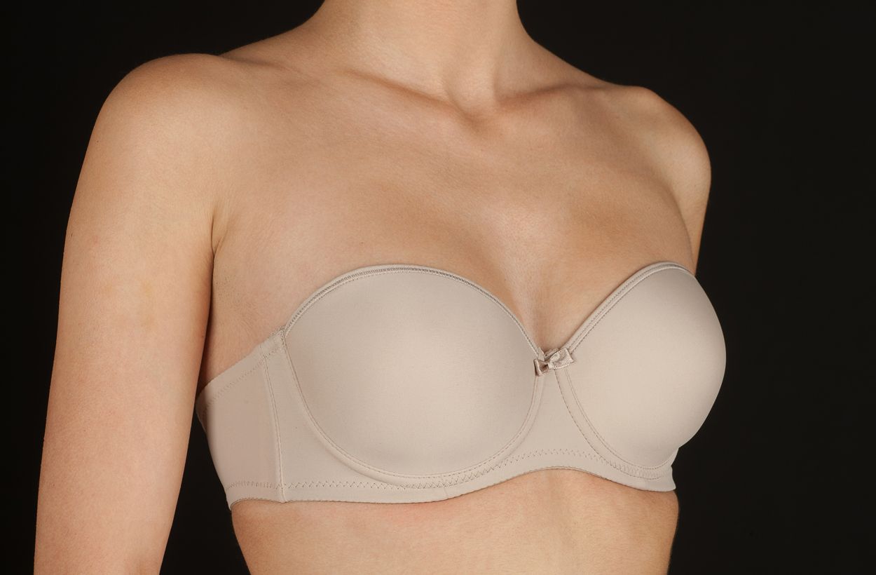 Sujetador de CREACIONES SELENE básico de microfibra, con aros, sin tirantes y copa de relleno. Incluye juego de tirantes textiles e invisible.