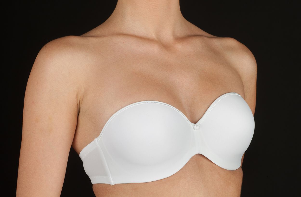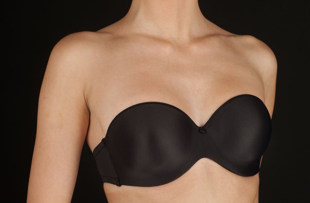 Sujetador de CREACIONES SELENE básico de mirofibra, con aros, sin tirantes y copa de relleno. Incluye juego de tirantes textiles e invisibles.