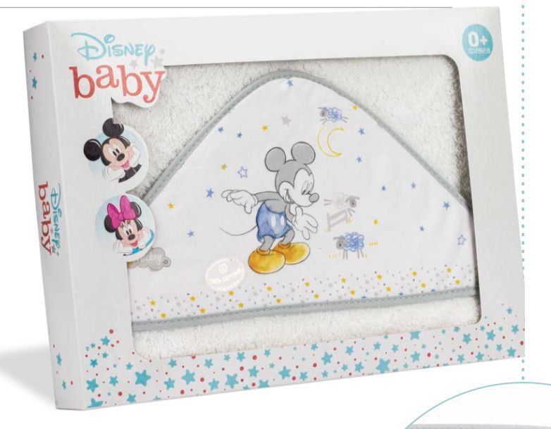 CAPA O TOALLA DE BEBE CON ESTAMPACIÓN DE  DIBUJO DE MICKEY DISNEY,  SEGÚN FOTOGRAFIA