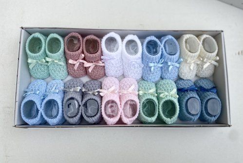 Patucos para bebe, en caja de 10 unidades.