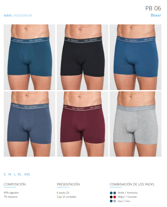 EN NATI CAMPOS, como  distribuidor mayorista de DON ALGODON, encontrará un gran surtido de interiores tanto para señora, caballero e infantil. tenemos boxer, slips, bragas, tangas, tops, de diferentes caracteristicas y precios,  donde prima la mejor calidad precio de mercado,