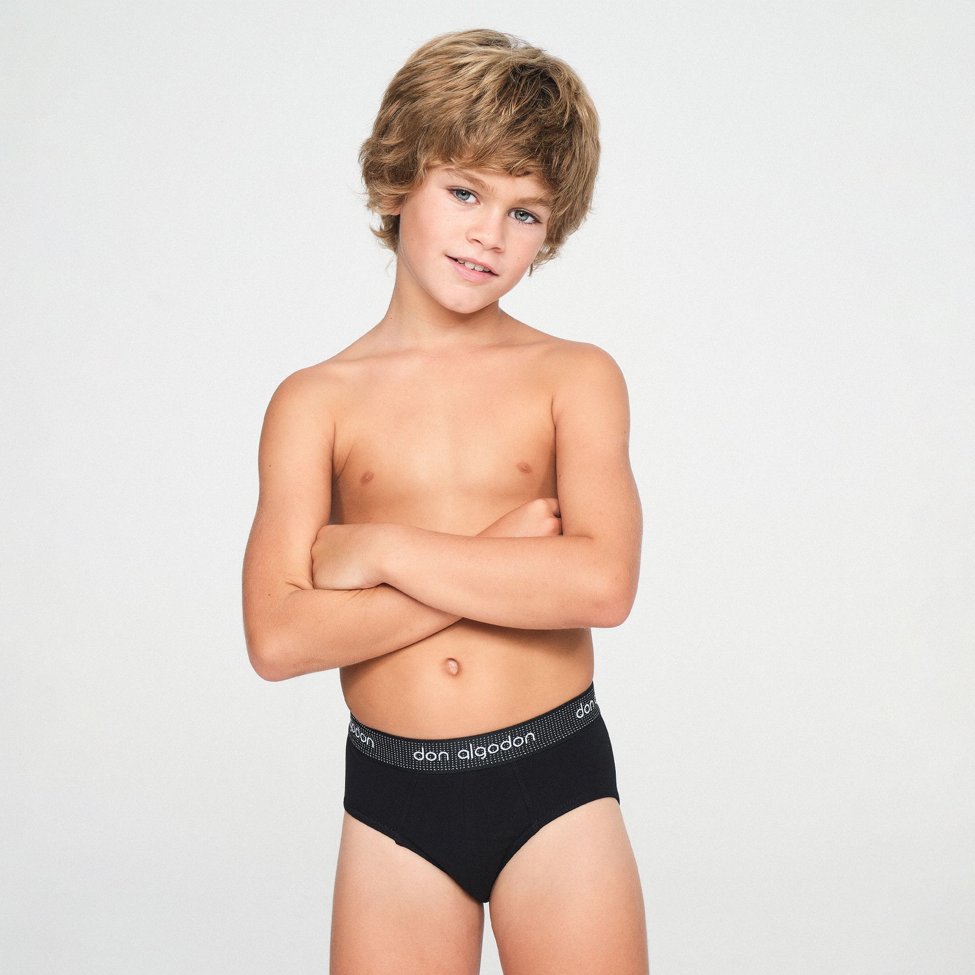 Boxer de niño de algodón con goma en la cintutilla con la marca impresa, En los packs siempre viene UNO LISO Y OTRO ESTAMPADO