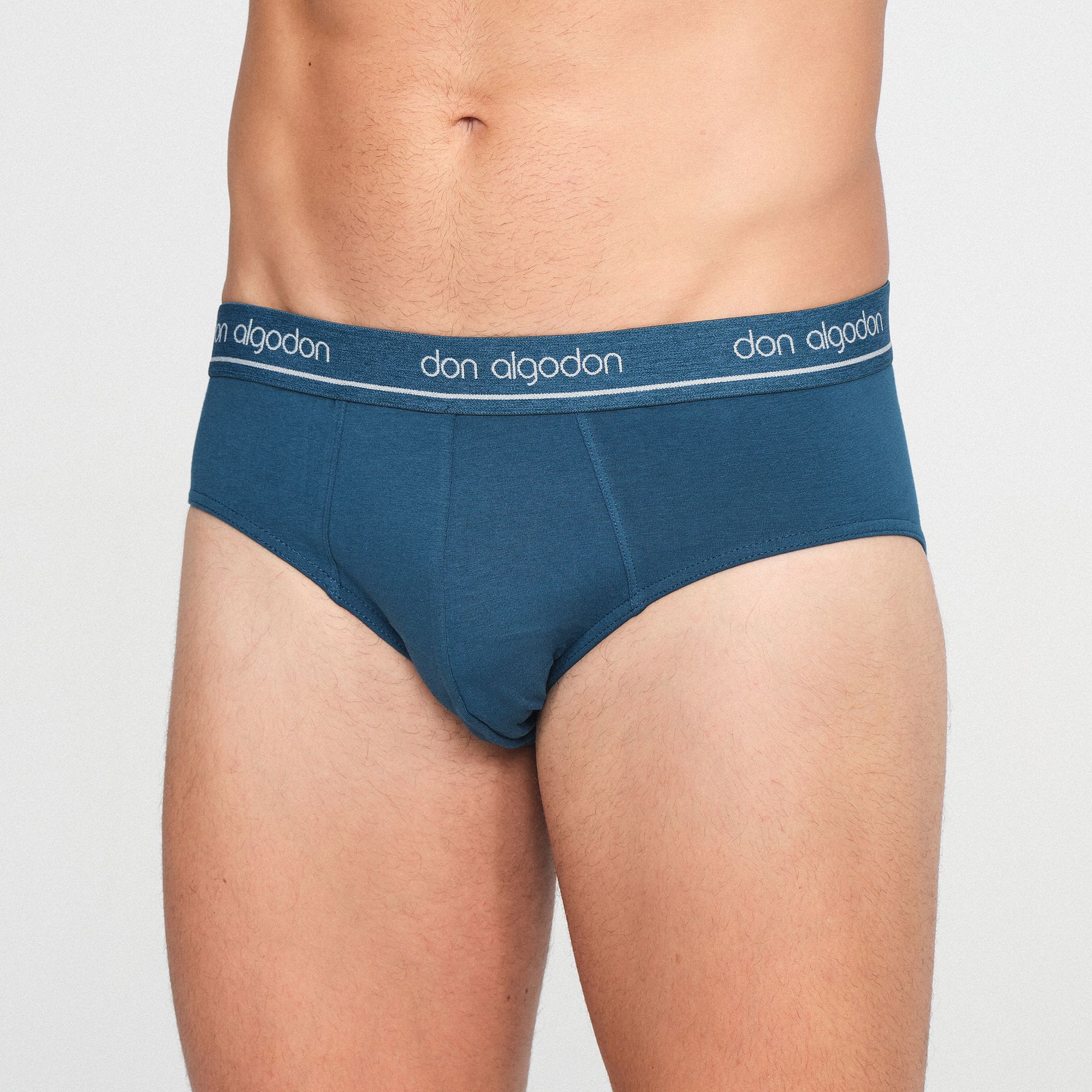SLIP de caballero de algodón con goma en la cinturilla con la marca impresa, en los packs vienen dos SLIPS LISOS DE DISTINTO COLOR