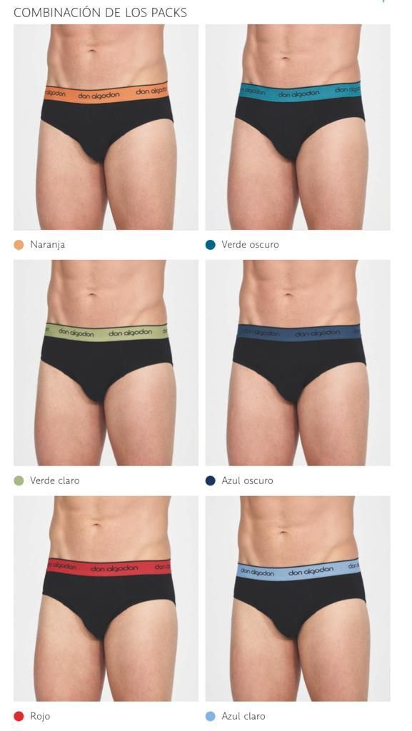 SLIP de caballero de algodón con goma en la cinturilla con la marca impresa, en los packs vienen dos SLIPS LISOS DE DISTINTO COLOR
