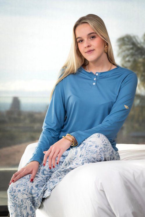 Pijama mujer abierto con botones estampado, aportando un modelo muy elegante y sofisticado, con un tegido suave y flesible.