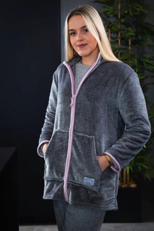 Bata corta con cremallera para mujer super suave de la marca Privata al por mayor.