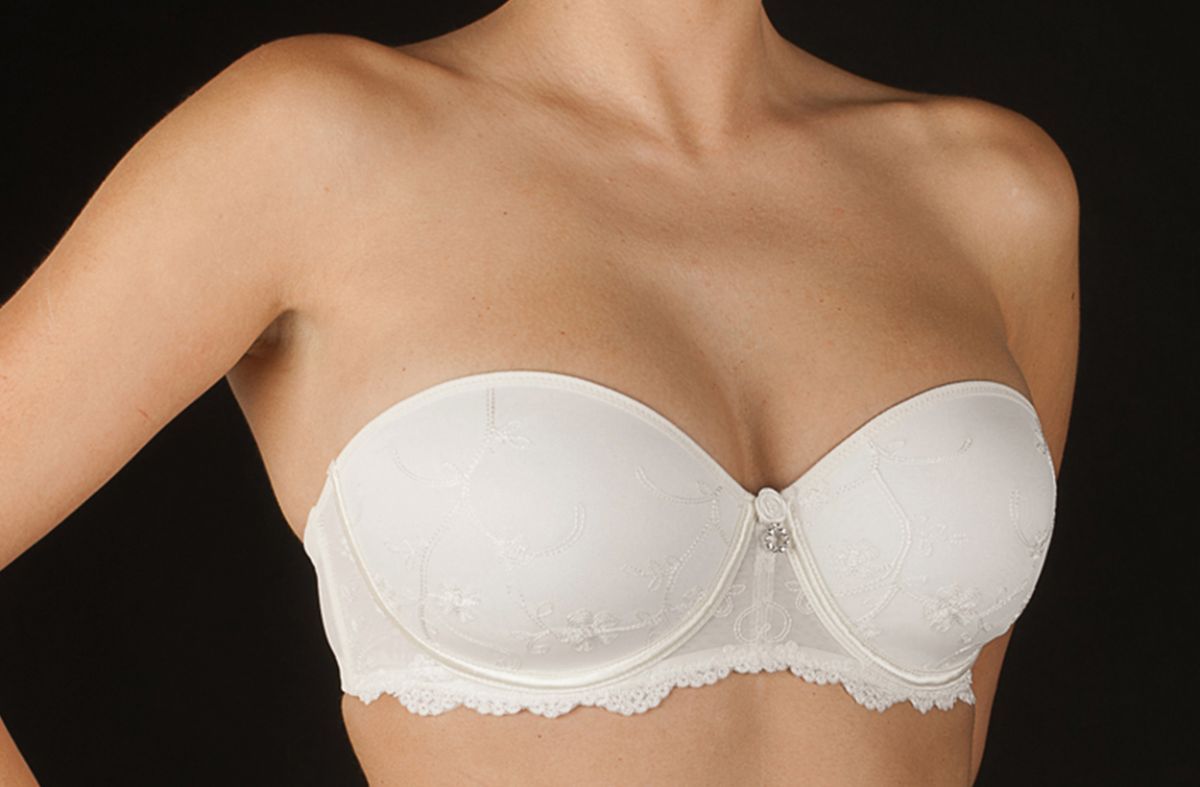 Sujetador de CREACIONES SELENE para novias con aros,sin tirantes, de tul bordado. Incluye juego de tirantes textiles.