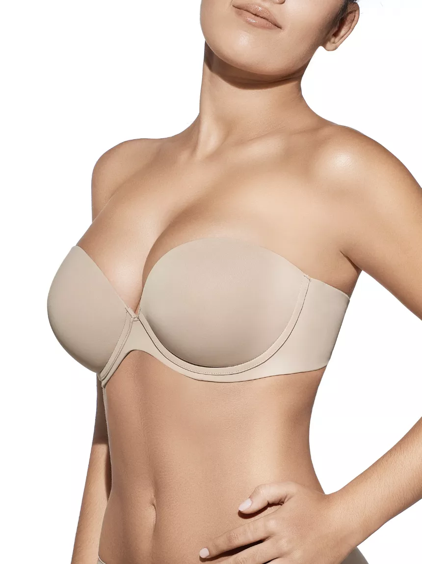 Sujetador de CREACIONES SELENE copa B sin tirantes con push-up con escote bajo.